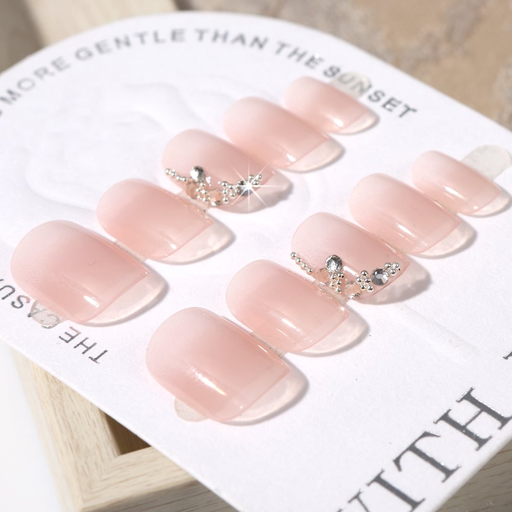 ミルクホワイトがとろけるように指先へ広がり、エレガントな雰囲気を演出するデザインが魅力的です☆ サイドに沿ったカーブビジューが上品な艶をプラスし、シンプルながらも存在感抜群の仕上がりを実現します♡