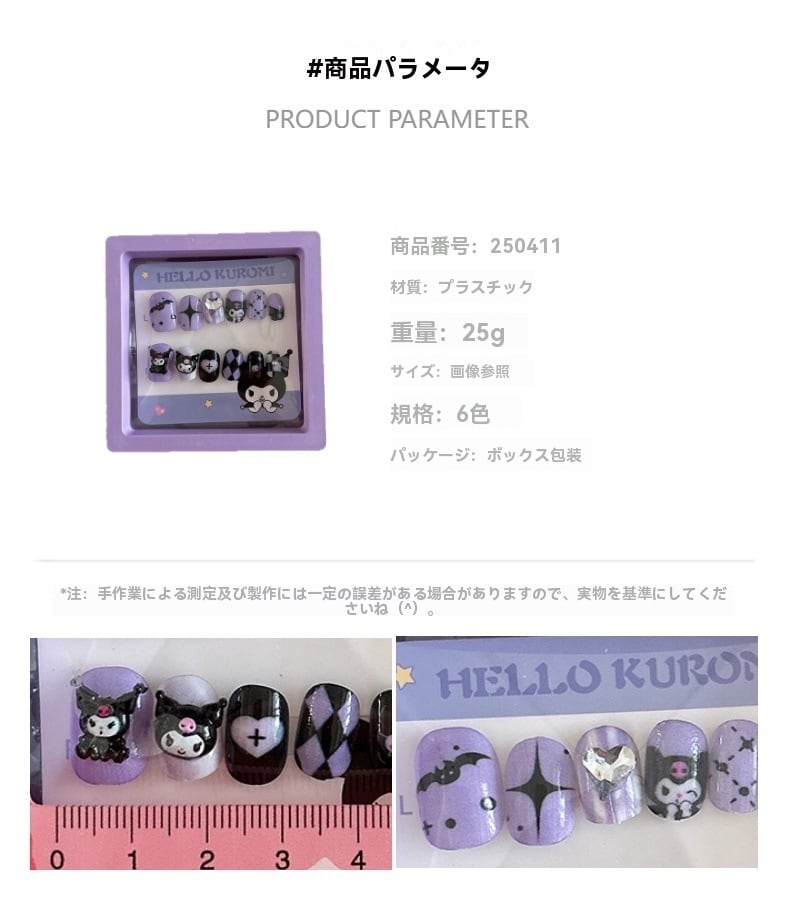 パンク×ガーリーの絶妙なバランスを楽しめる、クロミ風ネイルシールです☆ キュートなデザインに加え、クールな要素がミックスされており、女の子の指先を個性的に演出します♡