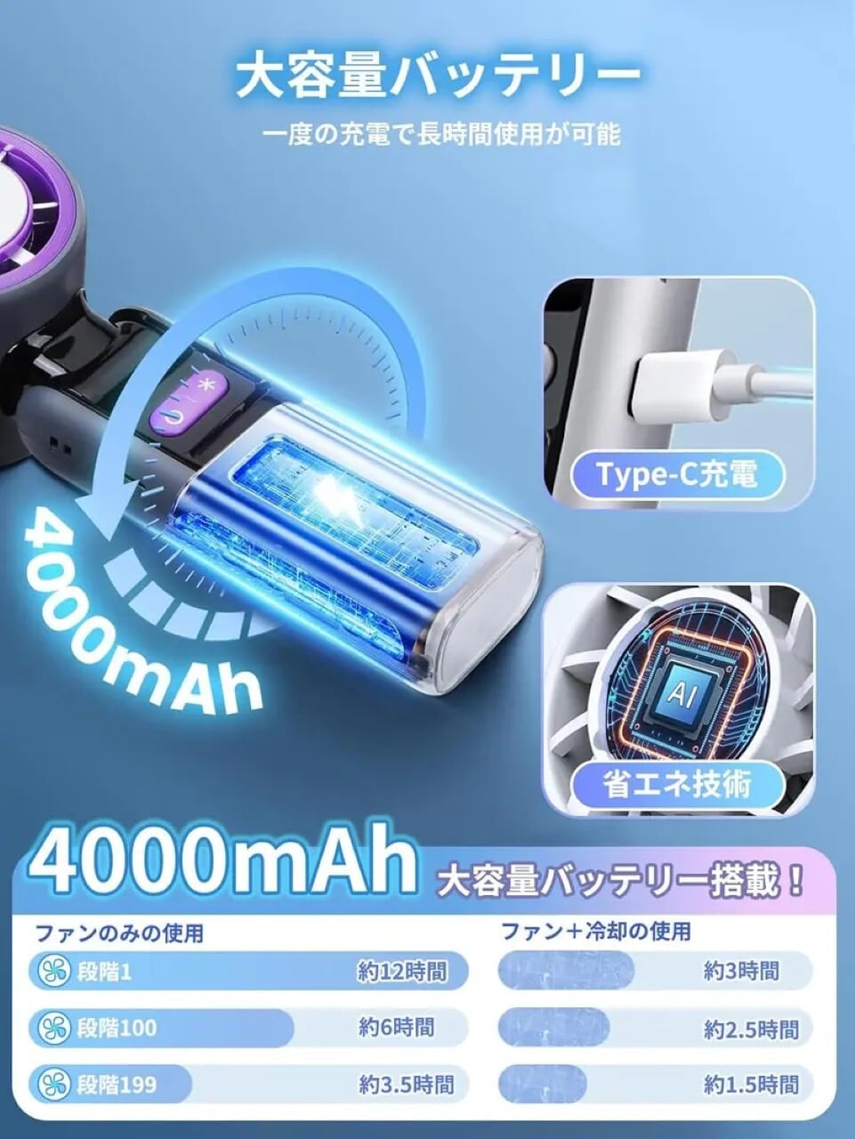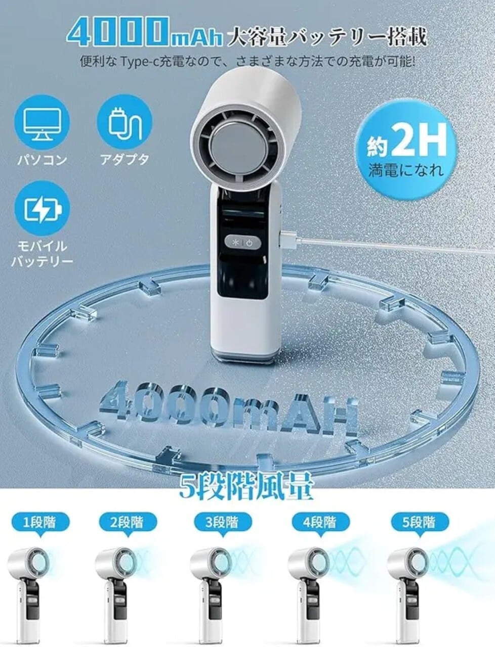 【国際安全認证&1年保证付き)PSE/FCC/CE/ROHS認証を取得した高品質設計。過充電防止·過熱保護機能搭载で安全性抜群。1年間のメ-カ一保証付きで安心してお使いいただけます。パッケ-ジ内容:扇風機本体x1ストラップx1、充電ケ-プルx1